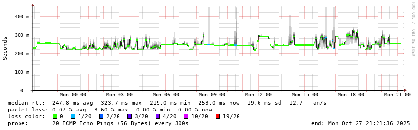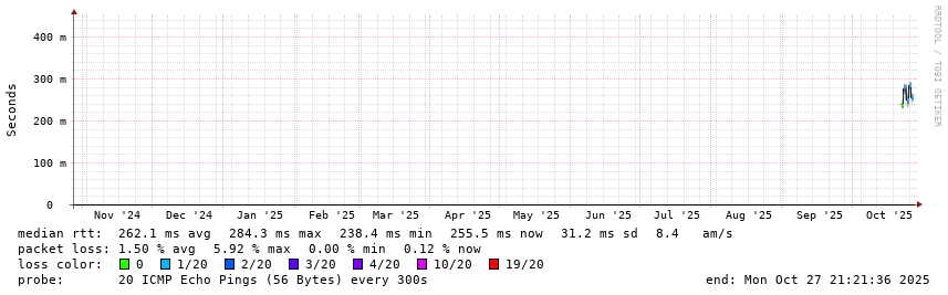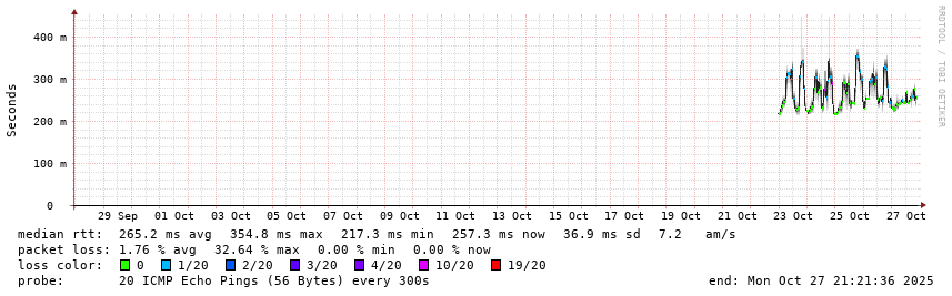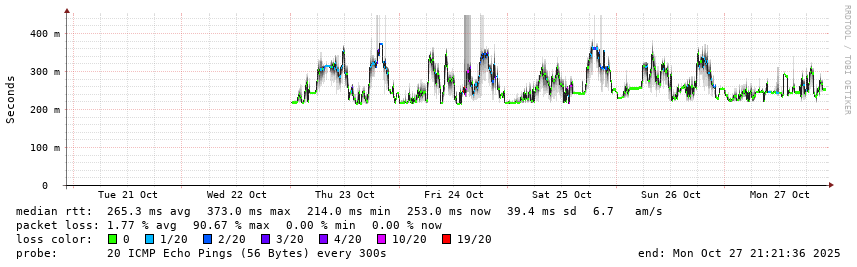 Running on SmokePing-2.7.3 by Tobi Oetiker and Niko Tyni. Maintained by IP Volume NOC