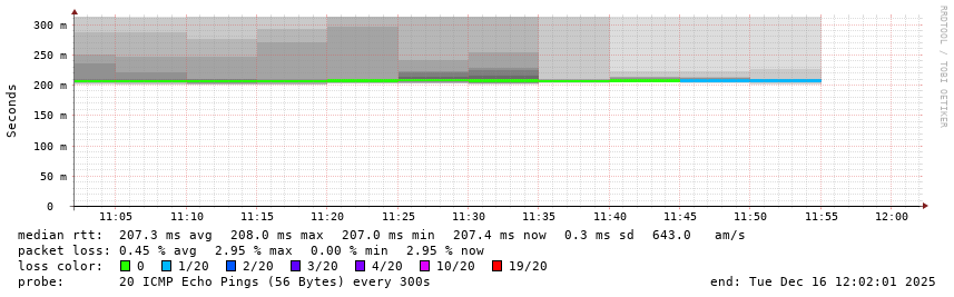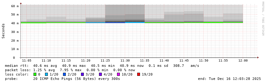 Running on SmokePing-2.7.3 by Tobi Oetiker and Niko Tyni. Maintained by IP Volume NOC