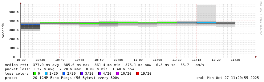 Running on SmokePing-2.7.3 by Tobi Oetiker and Niko Tyni. Maintained by IP Volume NOC