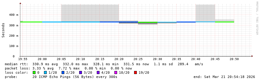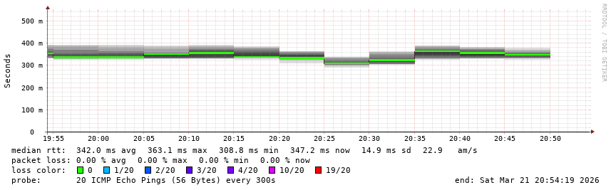 Running on SmokePing-2.7.3 by Tobi Oetiker and Niko Tyni. Maintained by IP Volume NOC